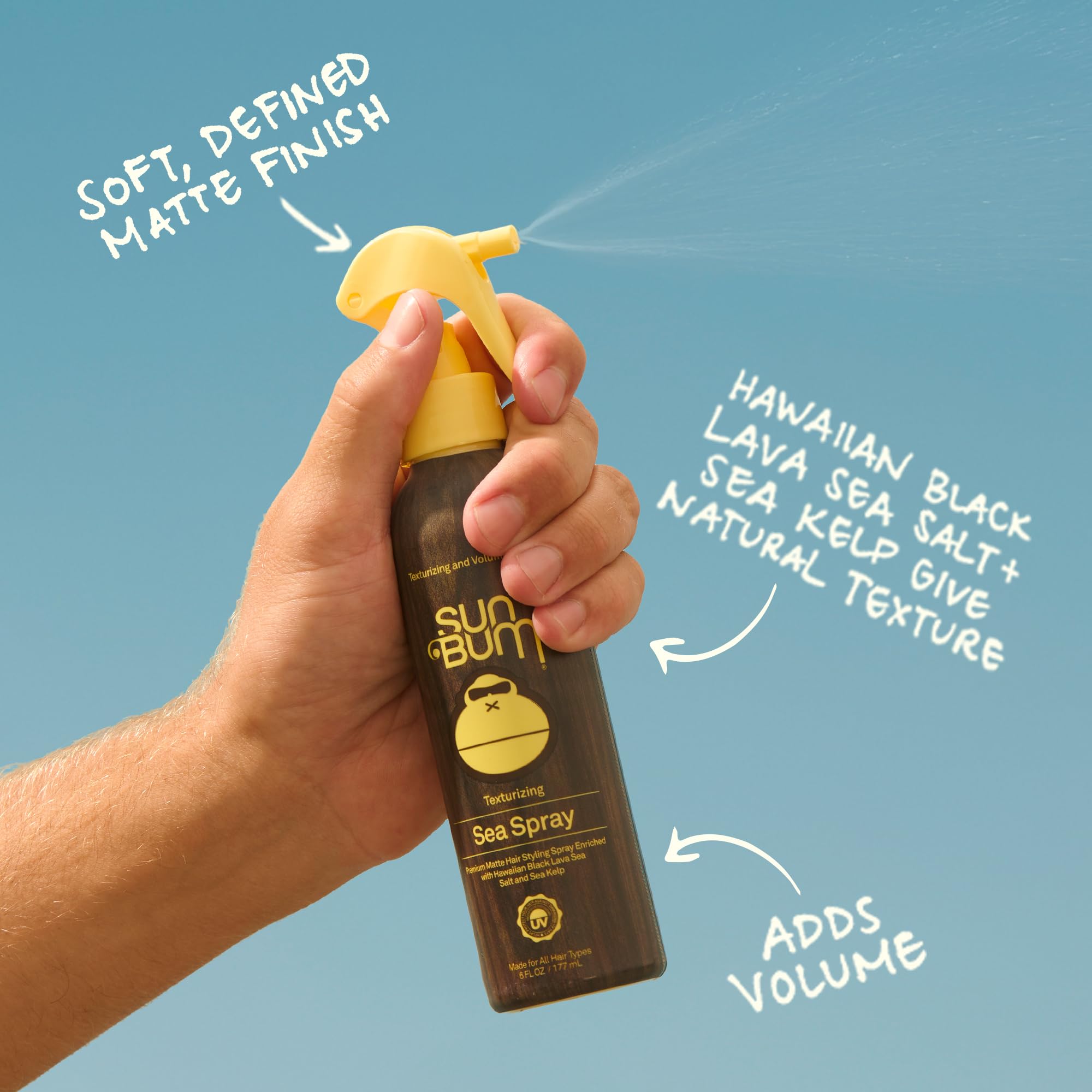 Sun Bum Sea Spray | Texturizing and Volumizing Sea Salt Spray | UV Protection With a Matte Finish | Medium Hold | For All Hair Types | 6 FL OZ Bottle | Texturizing, Volumizing, UV Protection, Matte Finish, All Hair Types, 6 FL OZ
